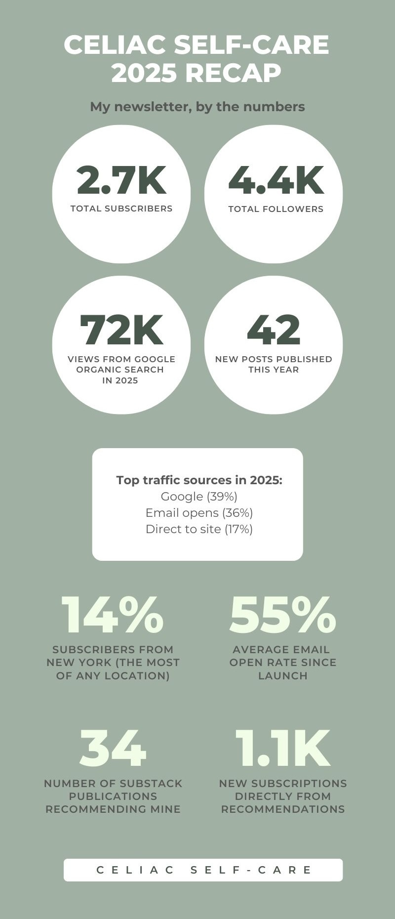 I’ve really enjoyed writing this newsletter for the celiac community, and I’m looking forward to publishing more in 2026.